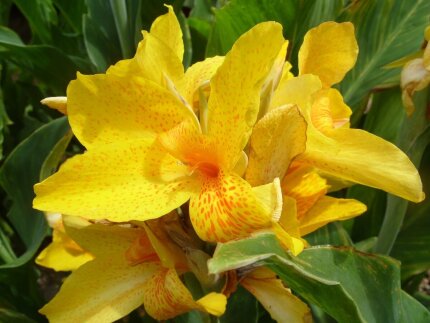 Клубень канны Луи Коттон (Louis Cottin) представляет собой многолетнее цветущее растение, которое благодаря своим ярким солнечным оттенкам цветов придаст вашему участку тропический колорит. Прямостоячие стебли этого сорта канн, сравнительно невысокие, достигают высоты 45-60 см. Яркие цветы прекрасно контрастируют с темно-зелеными крупными овально-продолговатыми листьями, заостренными на концах. Ширина листьев обычно составляет 10-20 см, а длина — 25-50 см. Эти растения станут настоящим украшением цветников, особенно если высаживать их большими группами. Они также подходят для внутреннего озеленения, если высаживать их в кадки или подходящие горшки.