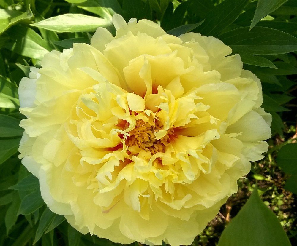 Пион древовидный Голден Ислес (Golden Isles) — это редкий и изысканный сорт, который привлекает внимание своей уникальной и завораживающей красотой. Его крупные махровые цветы, состоящие из множества волнистых и изящно изогнутых лепестков, достигают диаметра до 30 см. Канареечно-желтые цветы прекрасно сочетаются с насыщенно-зелеными тройчатыми листьями, создавая эффектный контраст.